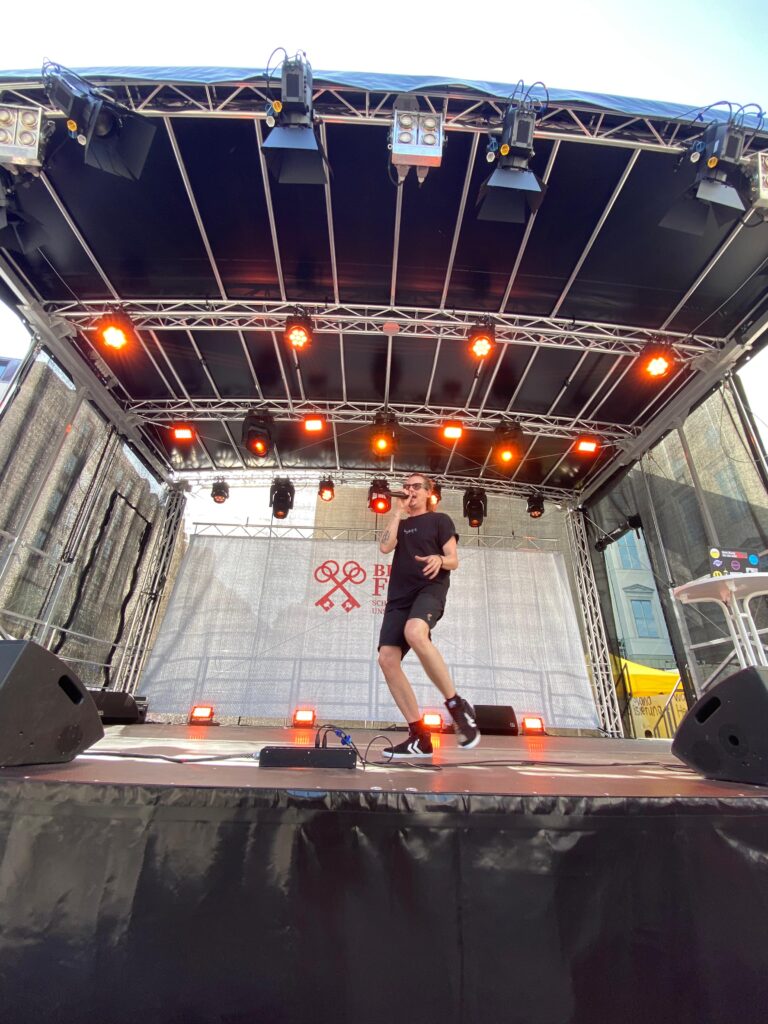 Live rockt dichter die Bühne mal mit DJ XL 1328, mal mit akustischer Unterstützung von oh girl! oder mit der Liveband „Steezy Tigers“ und bringt die Crowd dabei mit seinen Songs zum Nachdenken, Zuhören oder Tanzen. Sein Bühnenprogramm ist wie das Leben: ein Kommen und Gehen – alles fließt!
